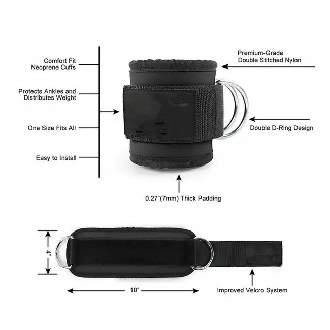 Enhance your lower body workouts with our Secure-Lift Padded Ankle Straps. Designed for comfort and stability, these straps feature soft padding and adjustable Velcro closures to ensure a secure fit around your ankles. With heavy-duty D-rings, they attach easily to cable machines, allowing you to target and strengthen your glutes, hamstrings, and thighs with ease. Step up your leg day game with Secure-Lift Padded Ankle Straps.